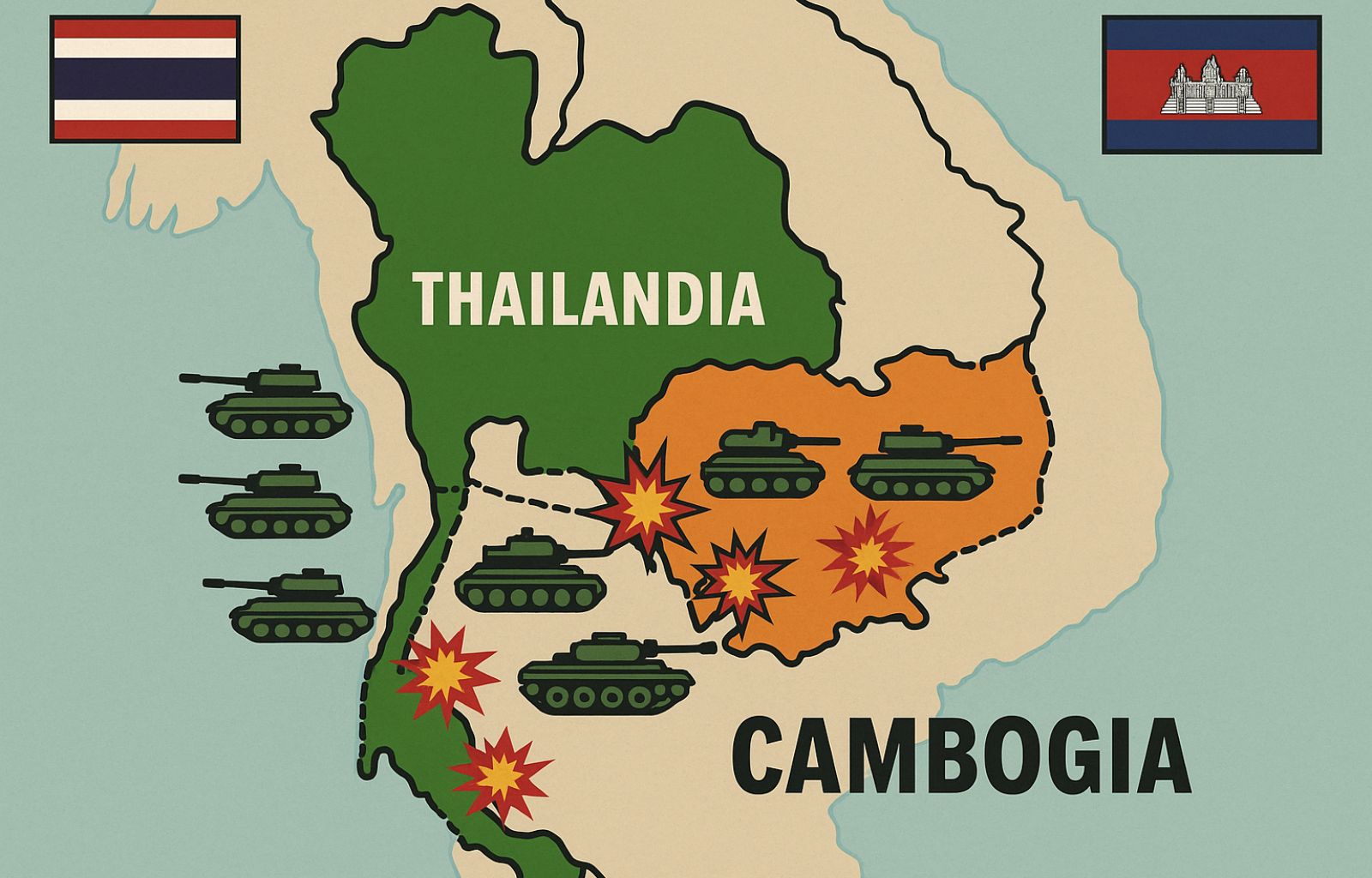 Negli scontri militari più sanguinosi degli ultimi decenni fra i due Paesi vicini del Sud-est asiatico sono morte decine di persone e circa 300.000 civili sono costretti a fuggire dalle proprie case. Le due parti hanno concordato un cessate il fuoco, mediato in parte da Trump, ma da allora si sono ripetutamente scambiate accuse di violazioni della tregua.